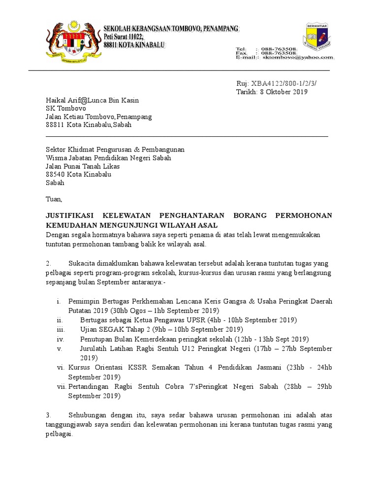 Contoh Surat Justifikasi Kelewatan Penghantaran Dokumen Pdf